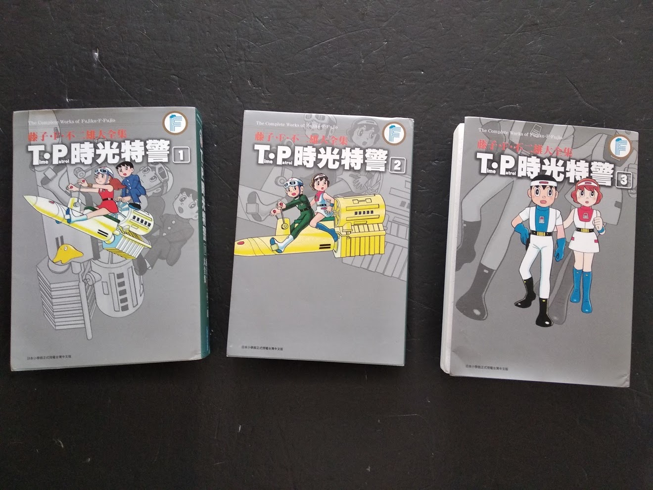 <<T.P.時光特警>>是叮噹,Q太郎,神奇小子,忍者小靈精作者在1978年的舊作,故事自然有一定水準,在香港並無發行,所以中文版就只有台灣版本,每本厚如電話簿,共有三册,時空特警乘坐時空飛車穿梭時空,回到過去,拯救某些特定人士,在70年代己有如此大膽、天馬行空的長篇漫畫構思,只能以厲害來形容了!