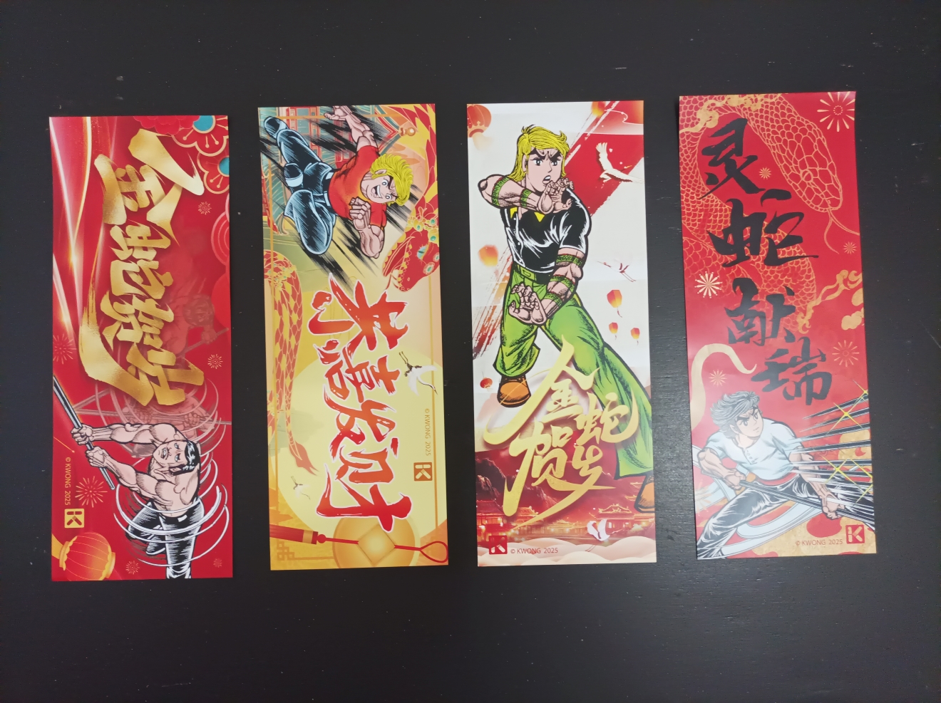 漫畫年曆、月曆卡、利是封等賀年漫畫產品曾經都出過不少,但漫畫揮春卻極少出現,這幾套李小龍漫畫近幾年送出的漫畫揮春,一連三年都是跟書贈送的,是非常少見到的漫畫產品。